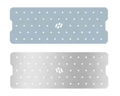 내부 건고한 PE 제품에 양면으로 알루미늄 소재를 적용하여 단단하고 내충격에 강한 제품. 앞면 알루미늄 코팅(PE 도장), 뒷면 알루미늄 적용으로 냉기를 유지하여 대상어의 변색 방지 및 신선도를 유지. 적정한 배열에 맞게 균등하게 다공된 구멍으로 냉기를 올리는 방식으로 대상어의 어체 표면과 얼음이 직접 닿지 않는 구조. 사용 후 수돗물로 바닷물과 이물질을 씻어낸 후 말려서 보관. 모서리 부분이 날카로우니 사용 시 주의바랍니다.