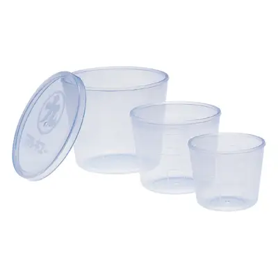 뚜껑있는 3종 세트 계량컵. 200cc / 100cc / 50cc 세가지 크기의 계량컵과 1개의 뚜껑으로 구성되어 있으며, 내용물의 용량을 확인할 수 있도록 눈금이 표시되어 있습니다. 뚜껑이 있어서 감탄 등을 흔들어 배합가능하며, 글루켄 류 부터 바라케 떡밥까지 정확한 물을 계량하는데 편리합니다.