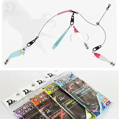 오징어 채비 리더. 140cm 길이의 3단 오모리그 리더 채비.