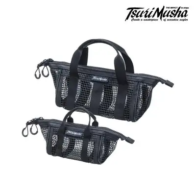 낚시 라인에서 사용한 소품을 수납한 채로 통째로 씻을 수 있는 PVC제 메쉬 파우치.