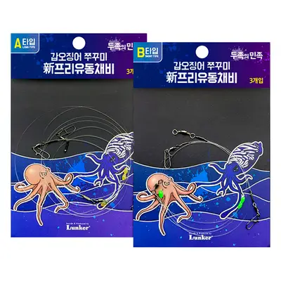 자유자재로 단차를 변동시킬 수 있는 맞춤형 채비. 주꾸미와 갑오징어 낚시에 물떼에 따른 단차 조절이 중요하며, 이 채비는 찌멈춤 고무를 활용하여 기본적인 단차의 폭을 조절할 수 있도록 설계되었습니다. 케이무라 일본줄 라인을 사용하여 꼬임 방지와 자외선에 노출되면 보랏빛으로 두족류에 어필되는 기능이 있습니다.