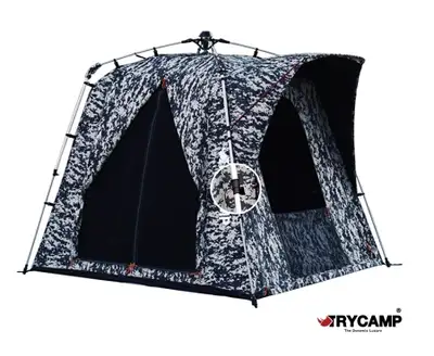 트라이캠프 FO-2018MW(MP) 무결로 텐트. 결로 없는 투습원단과 100% 암막 코팅으로 쾌적한 환경 제공. 전면 3중창(투명창+메쉬창+원단창)으로 다양한 사용이 가능하며, 이중 알루미늄 프레임으로 튼튼한 구조를 자랑합니다. 신형 락킹 시스템과 정품 액세서리(대형가방, 파우치, 삼각스토퍼 등)가 포함되어 있습니다.