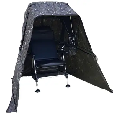 라프 낚시 의자텐트 벙커2. 의자 놓을 자리만 있으면 어디든지 설치가 가능한 텐트. 탈부착이 되는 자크 라인 위치와 앞문 사용 모습. 옆공간을 확장하여 사용하는 모습. 앞문을 분리한 후 사용하는 모습. 여유로운 옆공간 활용 가능.