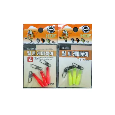 릴낚시 어신감지용 케미꽂이. 탑가이드에 장착하여 어신을 감지하는 용도로 사용. 형광색으로 시인성이 좋음.