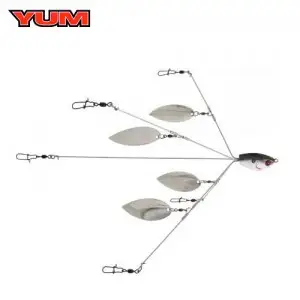 YUMbrella Flash Mob 5 Wire는 YUMbrella를 업계 최고의 견고한 스테인레스 스틸, 열처리 와이어, 강력한 스냅 및 스위블 등 모든 기능을 벨런스 줄게 갖추고 있습니다. 4개의 블레이드를 각 최고의 위치에 추가하여 엄청난 섬광과 진동을 만들어보다 큰 규모의 베이트 피쉬가 모여있는 이미지를 만듭니다. 보팅에서의 최고의 활약을 보여주고 토너먼트의 황제라 불리우는 FLASH MOB.