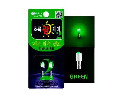 3mm 파이 크기의 초록색 전자케미. 기존 사용하던 LED 램프를 재사용 가능하도록 설계되어 있으며, 4.2칸 미만의 낚시대를 사용하시는 원거리 낚시를 위한 제품입니다.