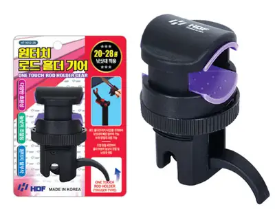 낚시대와 거치대의 탈부착이 손쉬운 원터치 시스템. 다양한 낚시대와 호환이 가능한 높낮이 조절링 채용. 홀더에서 낚시대가 이탈하거나 상하지 않게 하는 고정고무 사용.