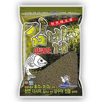 가벼운 어분 아쿠아 올림낚시용 집어제. 해초첨가 제품으로 불잡아놓은 물고기를 계속하여 반복 섭이를 유도하는 섭이 촉진제가 해초류속에 들어있는 미네랄과 알긴산입니다. 미역, 다시마, 김, 못, 파래 등에서 추출된 알긴산은 반복 섭이를 유도하는 기능성 섭이제로 개발된 것이 '아쿠아 김밍'입니다.