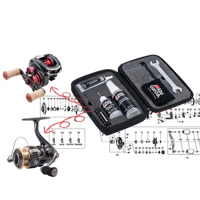 릴을 스스로 정비할 수 있는 올인원 '릴유지관리키트'. 다양한 유지관리용 소품(총 8가지)들이 가득하며 베이트릿 및 스피닝릴 모두에 대응. 휴대하기 쉬운 컴팩트 사이즈.