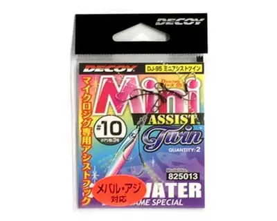 미니 어시스트 트윈 훅으로 소형 루어에 최적화된 어시스트 훅 세트입니다. 민어, 방어, 부시리 등 중대형 어종 타겟팅에 적합합니다.