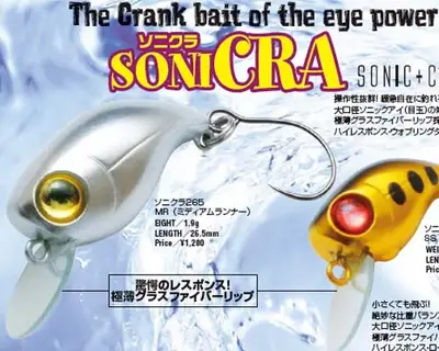 The Crank bait of the eye power king!! 슬로우싱킹타입. 절묘한 비중 밸런스로 폴 중에도 바이트를 유발. 대구경 3D 눈으로 어필. 극박 글라스파이버 립 기술. 하이레스폰스 롤 댄스.