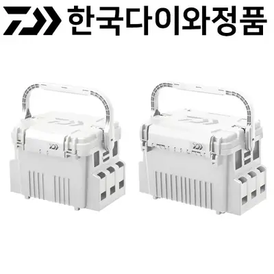 핸들 스토퍼 탑재 태클박스. 휴대 시 균형 유지, 90도 멈춤 뚜껑, 이너 트레이 내장, 다목적 홀더 장착.