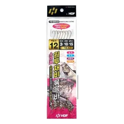 매듭을 만들 필요없이 핀도래로 연결되어 있는 구조로 편리하게 채비를 세팅할 수 있는 원투 채비 묶음바늘. 다양한 호수의 비늘을 이용하여 현지상황과 어종에 맞게 사용 가능. 간편하게 한 개씩 뽑아서 사용하는 묶음바늘.