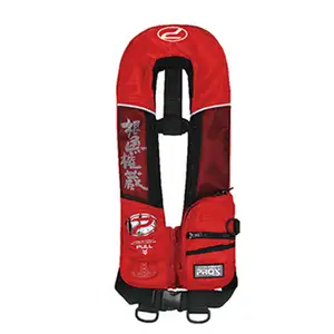 근어 찰혐 로고 (레드) 버전. 자동 팽창식 라이프 베스트. 네오프렌 패드 3M 제품 반사 파이핑 YKK 충격 그레이드 버클 포함. 팽창시 시인성 좋은 노란색면 표출.
