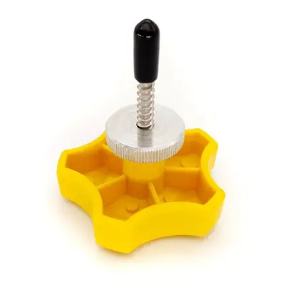 민물받침틀 고정나사. 받침틀 또는 파라솔을 고정할때 편리하게 사용하는 고정 나사못. 5.5cm의 큰 손잡이가 있어 나사를 고정하기 편하며 중간 고정핀을 이용해 원하는 깊이에 단단하게 고정시킵니다.