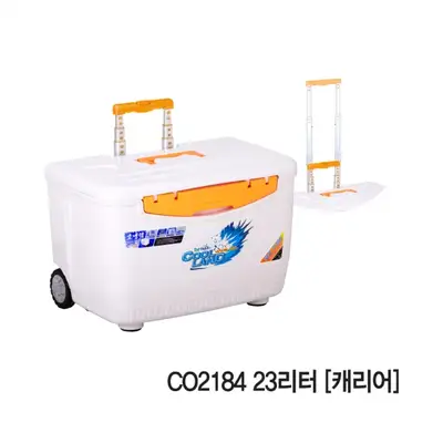 23리터 용량의 이동식 아이스박스. 고밀도 폴리우레탄 단열재 사용, 캐리어 타입 바퀴 적용, 스크류 타입 배수구, 양면 개폐 방식 적용. KS G 3217 보냉성 규격 충족.