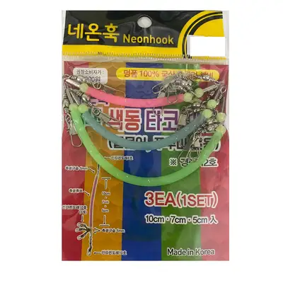 3EA(1SET) 구성. 10cm·7cm·5cm 3가지 길이 채비 포함. 3색 축광 튜브 사용으로 시인성 향상. 간결한 직결 패턴 채비.