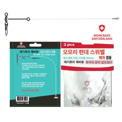 에기프리 채비왕 오모리 편대 스위벨로 쭈꾸미, 갑오징어, 한치 낚시에 최적화된 만능채비입니다. 에기프리라이트와 가짓줄의 간섴을 줄여 캐스팅과 라인운영이 용이하며, 에스테르라인 가지줄로 꼬임 발생 시 라인 변형을 손쉽게 복원할 수 있습니다.