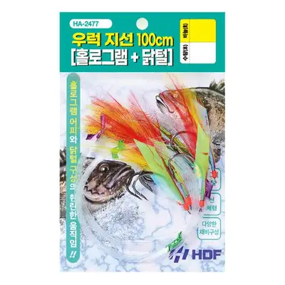 홀로그램 어피와 닭털 구성의 현란한 움직임으로 대상어 유인에 탁월한 효과. 지선 교체형 채비로 필드상황에 맞게 지선의 길이를 조절하여 사용. 부드럽고 인장력이 우수한 라인 적용. 다양한 채비 구성으로 대상어의 어필이 강한 채비를 손쉽게 교체 가능한 지선 채비.