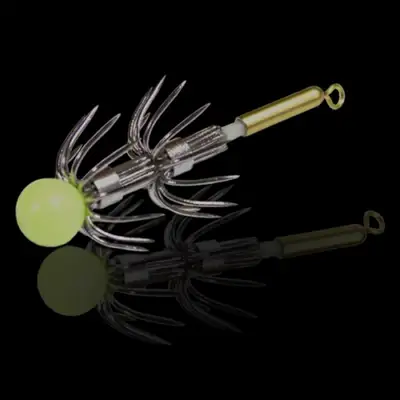 주꾸미/문어/한치용 교체형 튜닝 바늘. 봉돌이나 메탈지그에 응용하는 2중 튜닝 바늘이며 5개입, 하단 축광 불 적용.