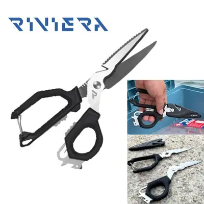 리비에라 멀티커터 손질가위 멀티시저스 R-TOOL은 고기손질 및 다용도 낚시가위로, 가위가 분리되어 꼼꼼한 세척이 가능하며 보호커버가 포함된 제품입니다. 비늘 제거, 로프 커팅, 손질, 병따개, 드라이버까지 다양한 기능을 하나로 통합한 올인원 멀티커터입니다.