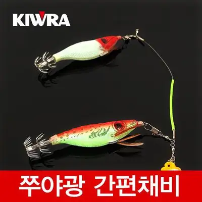 쪽꾸미와 갑오징어를 위한 야광 2단 간편채비. 야광 튜브를 사용함으로서 쪽꾸미와 갑오징어의 호기심을 극대화시킴. 1채비 교체시 편리하도록 맨도래 채택. 최고급 10호 스냅도래를 사용함으로서 왕눈이와 봉돌 교체시 편리하도록 제작.