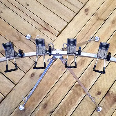 모든사이즈의 원투 낚시대를 거치할 수 있는 받침틀입니다. 바다원투낚시민물원투낚시장어낚시에특화된받침틀입니다. 간결한 구성으로 수납이 용이하며 제품조립이 편리합니다. 헤드색상이 레드색상으로 바뀌었습니다. 헤드 고정나사, 헤드 각도 조절나사, 네발 고정나사, 두레박 연결고리. 유동식이 아닌 고정식으로 땅에 박히면 확실히 고정시켜 줍니다.