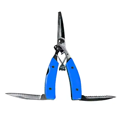 봉돌의 모양에 딱 맞는 홈과 돌기가 있어 간편하게 봉돌을 물 수 있습니다. 합사 절단, 바늘 빼기, 봉돌 조임 기능을 갖춘 멀티 플라이어로 미니 나이프와 미니 톱날이 내장되어 있습니다.