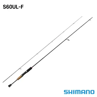 | S60SUL | 스피닝 | 송어, 꺽지 | 계류 | 6'0" | 1.83m | 87g | 2 | 93.5cm | SUL | — | — | 1.5 ~ 4.5 | 2.5 ~ 4 | 1.4mm | 6mm | Carbon | 93.3% | K-Guide | SHIMANO Original Reel Seat |