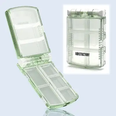 폴리카보네이트 소재의 투명 케이스. 미니멀한 사이즈 안에 여러개의 방으로 나누어 다양한 낚시소품을 들고 다닐 수 있습니다. 폴더블 케이스로 위아래로 수납가능하며 열린 각도 그대로 고정되어 편리합니다. 자유로운 칸 조절이 가능하여 상단의 칸막이를 이동할 수 있어 원하는 칸 사이즈로 DIY 가능합니다. 바닥모서리를 'R'자모양으로 처리해 소품을 꺼내기에 간편하며 끄리스탑 힘지 구조로 쉽게 열고 닫을 수 있습니다.