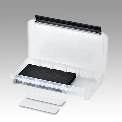 VS-8050, VS-3080, VS-3078 시스템 수납 가능한 40cm 바칸 옆 3 열 수납 가능한 태클박스. 가변 간막이 판 5 매 부착, 원터치락, 잎 프루프 기능 탑재.