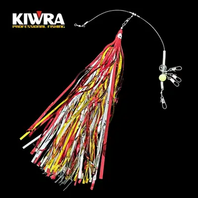 3D 홀로그램 2단 채비 V2 피문어 채비. 30홀로그램 문어채비 Version.2. 대형 꼼뚜기, 풍성해진 스커트, 호기심UP 반짝이 틴실, 케이무라 라인과 구슬, 야광구슬 & 장축광튜브, 반짝이 틴실, 인터스냅도래 5호, 맨도래 6호 구성. 자외선에 반응하는 케이무라 물질이 포함되어 있어 대상어종의 호기심을 자극합니다.