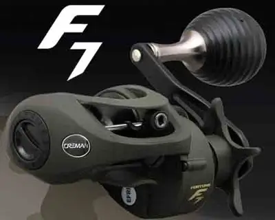 FORTUNE 에프세븐 F7(2022년형). 저중심 설계와 컴팩트한 바디로 사용시 안정성 향상. 카본다매 드랙패드 적용으로 드랙력 향상 및 드랙편차 개선. 초고강도 듀랄루민 드라이브기어 적용으로 기어강도 향상 및 경량화. 일체형 알루미늄 프레임 적용으로 충분한 강도 확보. 드랙 클릭음 구조로 인지력 향상. 딥 스풀 적용으로 충분한 권사량 확보. 프레임 EDP 처리로 내식성 향상. 인체공학을 감안한 알루미늄 주름형 핸들 노브 설계로 미끄럼 방지 및 그립감 향상.