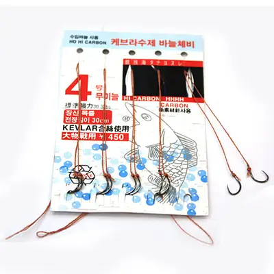 본라인 도깨비 케브라 수제 묶음바늘. 헤라민물붕어낚시전용. 무미늘HD하이카본. 장신목줄전장30cm