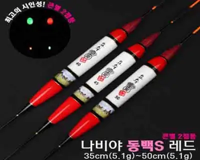 35cm 크기의 동백S 레드 전자찌. 5.1g 부력으로 중하류 낚시에 적합함.