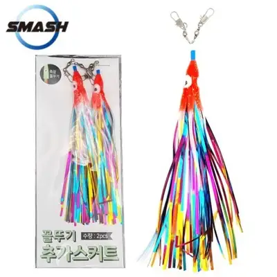 꼴뚜기 홀로그램 문어채비 추가 스커트. 화려한 컬러와 축광효과로 문어 어필. 기존 채비에 추가 사용.