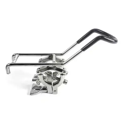 스테인레스 재질의 2중 잠금 수갑형 선상받침틀. 듀얼 고정 방식으로 낚시대 거치가 가능하며 보관 파우치가 포함됨.