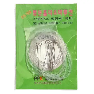 중층낚시용 내림 채비. 실리콘튜브와 마루칸으로 구성되어 편리한 채비 조립이 가능합니다. 외경 1mm, 내경 0.5mm, 길이 90cm.