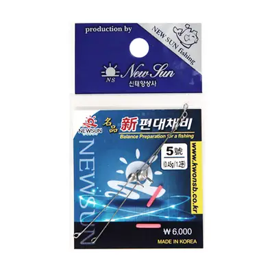 신태양상사의 NEW SUN명품 신 편대채비는 편대낚시 기본 아이템으로, 아래로 내려가고 위로 떠오르도록 설계되었습니다. 1호 0.25g부터 12호 0.8g까지 12종이 있으며, 1~12호의 편대 날개 길이는 12종 모두 7cm입니다.