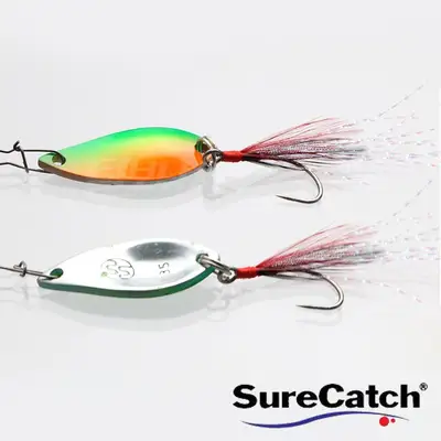 깃털, 텐슬과 오로라 묶음이 적용된 오로라 깃털 바늘(고강도 카본바늘)과 하이퍼 스냅이 기본 구성된 동합금 재질의 송어용 스푼입니다. 매력적인 폴링과 워블링 액션을 연출합니다.
