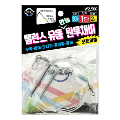 전장 약 96cm, 야광라인 30호, 유동파이프(7cm), 축광구슬, 축광튜브 구성. 우럭, 광어, 도다리, 감성돔, 장어 등 모든 어종 원투 만능 채비.