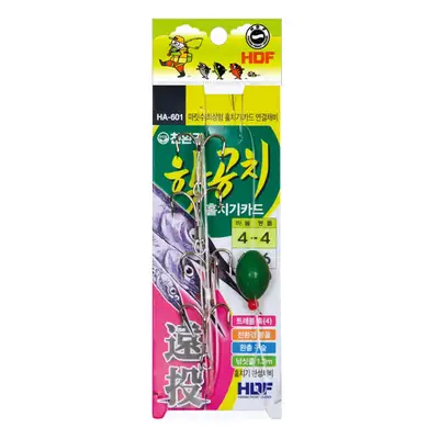 학공치 홀치기 카드 채비로, 봉돌과 구슬이 연결된 채비입니다.