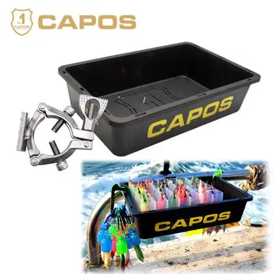 카포스 휴대용 선반 (선상 설치 가능). 약 250g 경량, 바닥 물빠짐 구조, 선상 봉에 집게/수갑형으로 설치하는 선상낚시용 선반 세트.