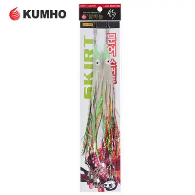 꼴뚜기 문어스커트 채비. 탄력좋은 축광 꼴뚜기웜은 두족류를 쉽게 유혹할 수 있으며 얇은 반짝이 스커트는 물속에서도 자연스럽게 나풀거립니다. 축광 파이프를 사용하여 축광력 UP. 추연결을 할 수 있는 인터락 도래와 에기를 장착할 수 있는 3개의 인터락 도래가 포함되어 있습니다.