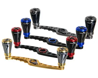 베이트릴 튜닝용 더블핸들. 시마노/다이와 겸용으로 손쉽게 장착 가능하며 4가지 색상 제공.