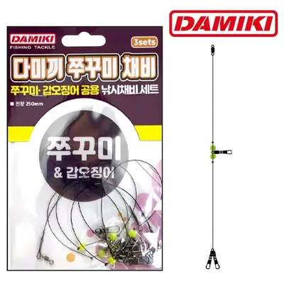 주꾸미 갈오징어 공용 낚시저서트 전용 250mm. 기성품 중 가장 심플한 채비 구성. 야광 십자 구슬 채용으로 채비 꼬임을 방지하며, 어신 전달력이 빠름. 최고급 롤링스위벨 사용으로 줄꼬임을 최소화.