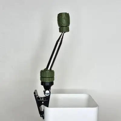 간편하게 사용할 수 있는 빙어낚시용 봉돌걸이로 상하단 2개의 회전관절로 각도 조절이 가능하며 8단 안테나 구조를 적용했고 20mm 두께 이하의 어항/테이블 등에 장착 가능합니다.