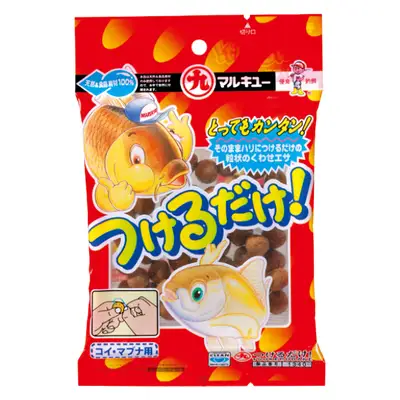 手軽に使えるくわせつけるだけ。コイ・マブナ釣り用。袋을 열어 내용물을 꺼내 바늘에 달아 사용하는 타입.